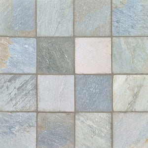 A good quality natural slate floor or wall tile for use indoors or outdoors in Oyster, with a textured (rivened) finish it means every tile is unique in appearance and form a fantastic effect when laid.